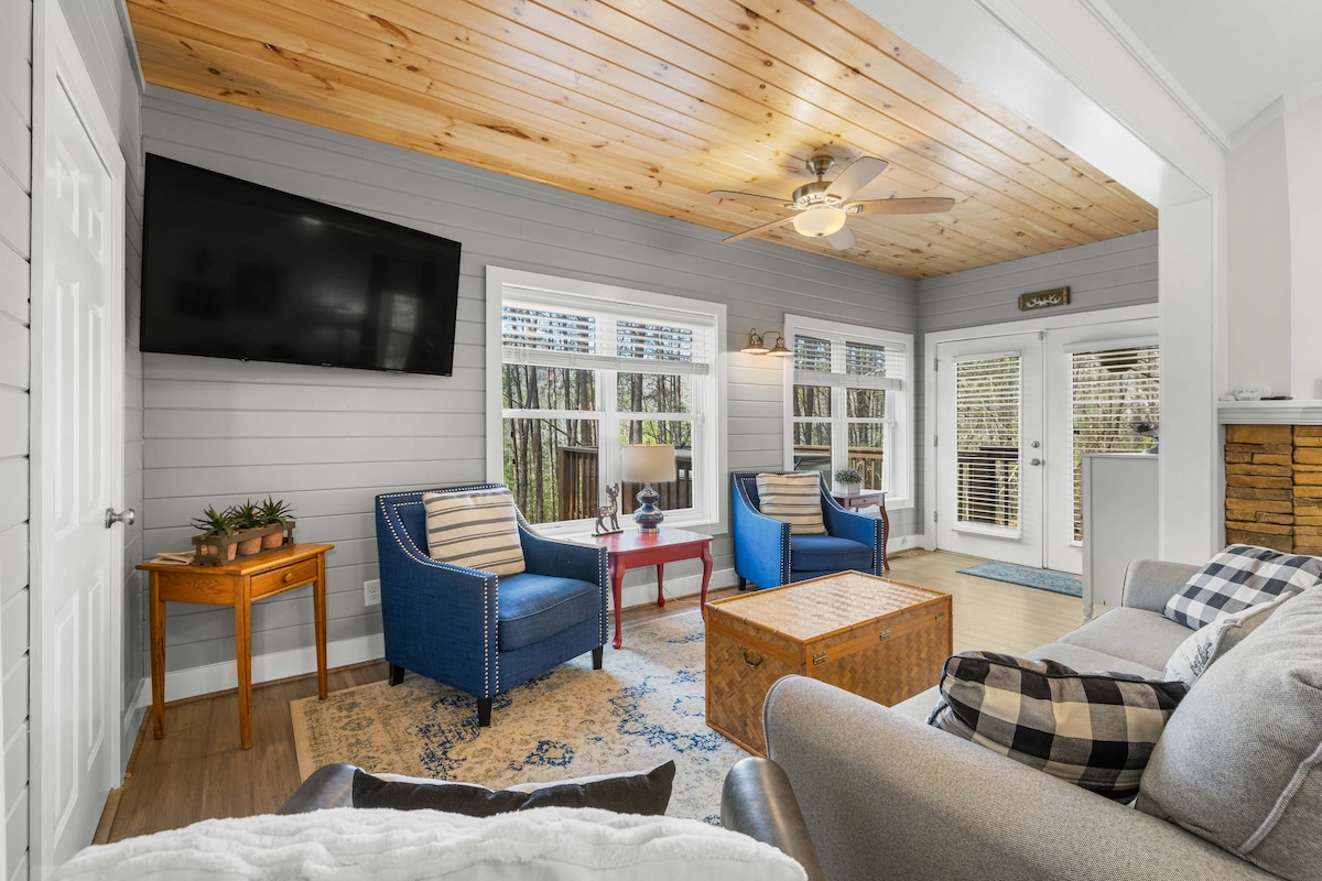 Tangkilikin ang iyong nakakalibang na pagsakay sa mga bundok ng N. GA sa magandang Alpine Helen. 1.5 milya lang ang layo sa bundok, makikita mo ang Innsbrook Golf and Spa Resort. Ligtas na pumasok sa aming gated at binabantayan na komunidad at nasisiyahan sa mga amenidad na sagana. Boutique hotel na may spa, dining, at sky bar na katabi ng golf clubhouse. Ilang hakbang lang ang layo mula sa CHALET123. Ireserba ang iyong oras sa mga tennis o pickleball court na available sa aming mga bisita pati na rin sa seasonal community pool. Lahat ng ito ay may address ni Helen