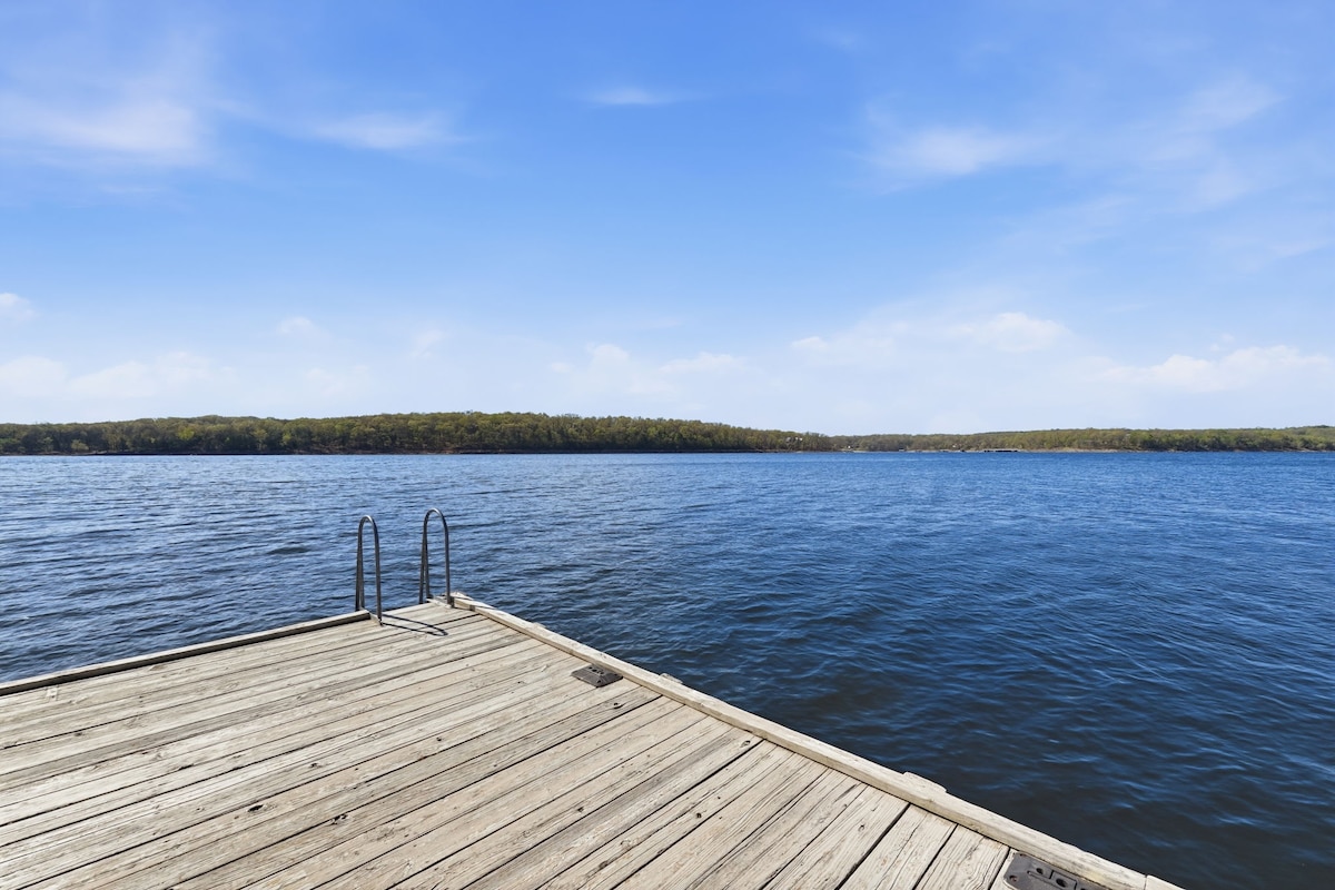 Ang 3 antas na liblib na tuluyan sa lawa na ito ay nagbibigay sa iyo ng mga kamangha - manghang tanawin, kapayapaan at katahimikan. Matatagpuan kami sa 20 minutong magandang biyahe mula sa Shell Knob. Sinasakop ng mga host ang pangunahing antas. Ang ilalim na antas ay ganap na pribado sa iyong sariling entry. Ang pinakamataas na antas ay hiwalay na may mga pribadong silid - tulugan at isang magandang lugar na nakaupo na maaaring magamit para sa dagdag na bisita o isang hiwalay na booking. Ang table rock lake ay nasa likod na pinto para sa paglangoy, pangingisda o pagrerelaks. Tangkilikin ang kapayapaan sa aming 2 malalaking deck. Magluluto ako ng German sa req.