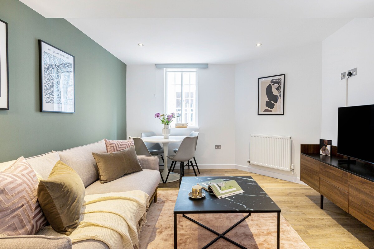 Magrelaks sa isang libro sa isang Tranquil Oasis. Sumali sa mayamang kasaysayan ng Spitalfields mula sa tahimik na 37sqm 1 - bedroom haven na ito. Magrelaks sa isang Brazilian na duyan sa ilalim ng puno ng puno ng fiddle - leaf na puno ng igos, ang perpektong lugar para makapagpahinga habang lumalaki ang lungsod. Masiyahan sa isang laser cinema projector na may 100 pulgada na screen at nakakaengganyong tunog para i - stream ang iyong mga paboritong palabas at pelikula. Pinapagana ng 100% renewable energy, pinagsasama ng apartment na ito ang kaginhawaan, libangan, at sustainability sa gitna ng lungsod.