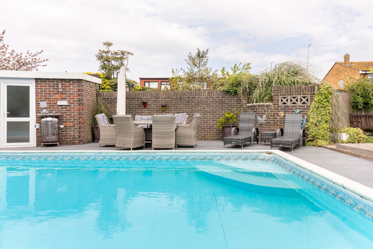 Annex at the bottom of our garden with its own patio area with views of the pool and garden. Nice quiet area with fields and woodland walks nearby Keys left in door - guests can let themselves in, we are generally around if you have questions There is BBQ area and a heated pool (shared with hosts) for stays of 2 days or more. Please note pool heating is not turned on until about mid-end of May and turned off in September. 5 min to Herne Bay. 15 min to Whitstable 20 min to Canterbury