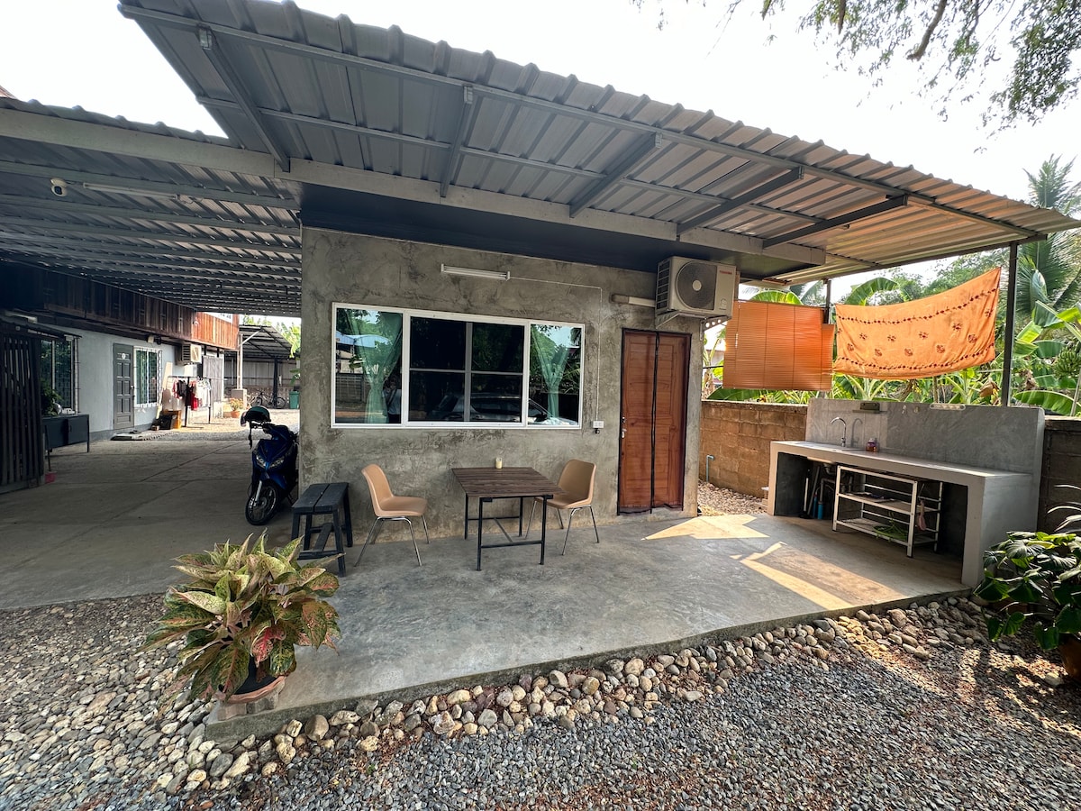 You will get the whole house. It's located next to the Wat Phra That Chae Haeng Temple, one of the 12 Temples of the Months (Rabbit) in Thailand. A 7/11 convenient store is nearby. You will have free, fast Wifi. The house has two big beds and Air Conditioning. There is also a small extra room that also has AC. There are two bathrooms one for the bedroom, one in the kitchen area. The kitchen has everything you need to cook and eat at home. Grab and LineMan also deliver food from the city.