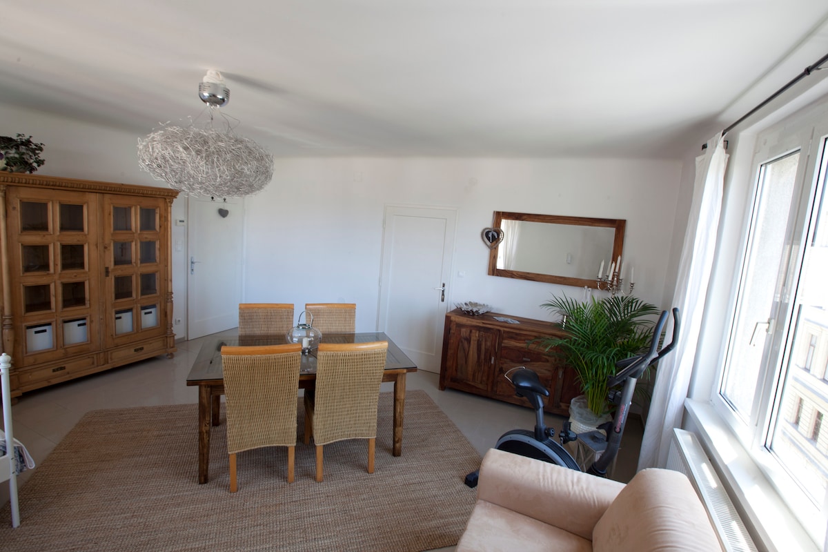 Ang studio ay mahusay na nilagyan at nakatayo sa 3rd Viennese district. May direktang koneksyon sa Metro sa paliparan (20 min), sentro ng lungsod (7 min) at istasyon ng tren ( 10 min) May 2 maluluwag na terrace na may tanawin sa ibabaw ng Vienna. Ilang hakbang lang ang layo ng malaking supermarket, asian market, at botika. Mayroon ding Pizza Dominos, asian at oriental restaurant sa paligid. Madali mong mapupuntahan ang sentro ng lungsod sa pamamagitan ng Tram ( 10 min sa Opera). Nilagyan ng AC.