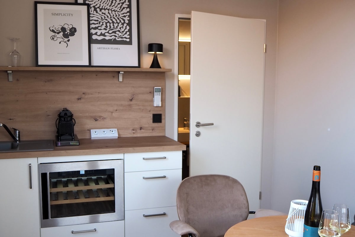 Maganda at maaliwalas na apartment na may 2 kuwarto sa gitna ng Rheinhessen na may nakakamanghang tanawin ng mga ubasan. Ang apartment ay mayroong modernong silid - tulugan na may double bed at flat screen. Ang pangalawang kuwarto ay isang western style na saloon na may kasamang kusina/bar, fireplace at isang sofabed. Ang pribadong banyo na may kasamang shower ay bahagi rin ng apartment. Kasama ang almusal na may mga sariwang buns, jam, keso, joghurt at kape/tsaa.