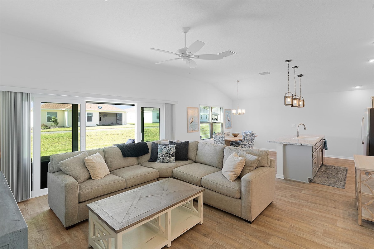 🌴 Modernong 3Br/2BA Begonia - style na tuluyan sa bagong kapitbahayan ng Cason Hammock ng The Villages. Itinayo noong 2021, nagtatampok ang maluwang na 2,083 talampakang kuwadrado na retreat na ito ng bukas na layout, malaking garahe + garahe ng golf cart, at naka - istilong kaginhawaan sa iba 't ibang panig ng mundo. Maglakad papunta sa Sawgrass Town Square, McGrady's Pub, pool, rec center, at Fresh Market. Masiyahan sa pamumuhay ng mga Baryo na may lahat ng kailangan mo para sa isang nakakarelaks na pamamalagi!