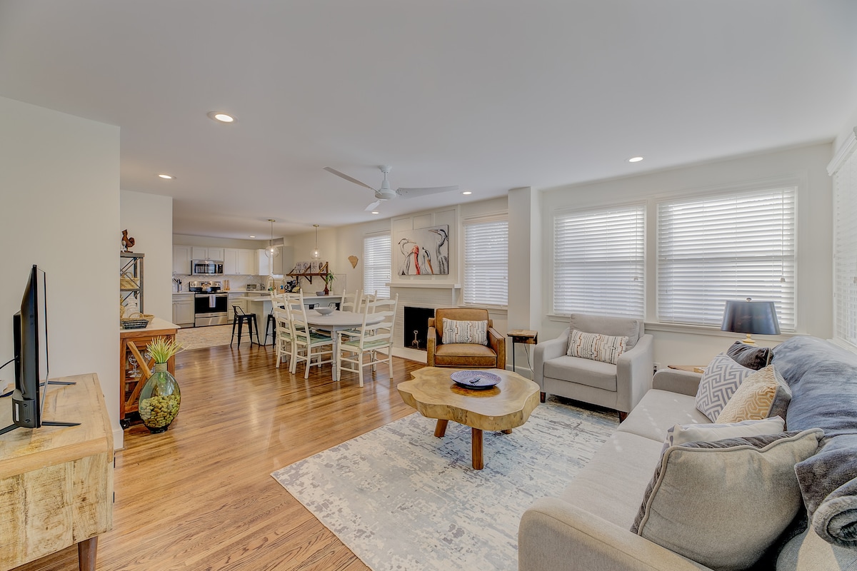 Downtown Blue BoHo w/ outdoor spaces, grill & FP