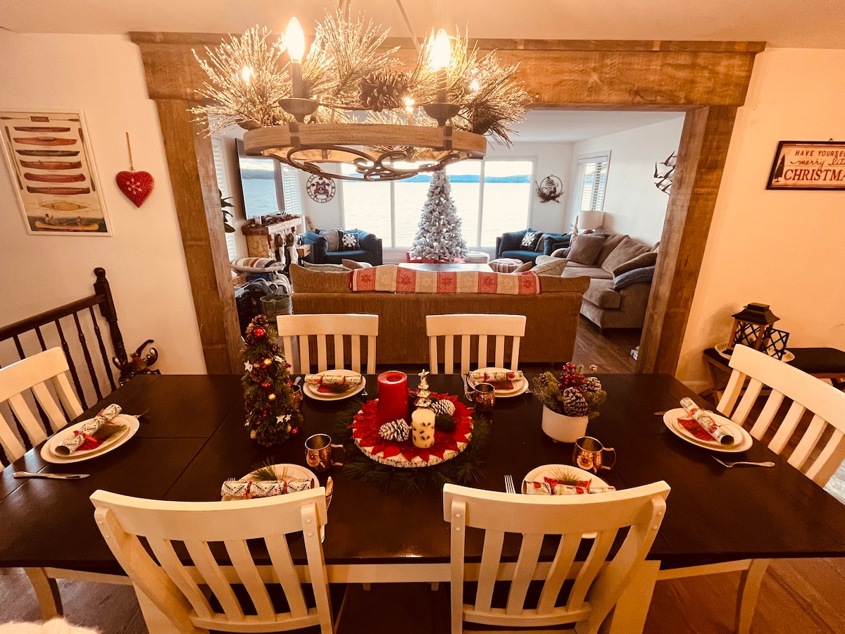 Escape to The Timber Oasis. A custom-built timber-frame retreat with floor-to-ceiling windows on 4 private acres of valley views. The Highlights: 🌲 5 mins to Lake Clear 🛁 Private covered Jacuzzi® Hot Tub 🔥 Cozy wood stove + outdoor fire pit 🛌 Sleeps 6: 2 BRs w/ Queen-over-Queen bunks 🐾 Pet Friendly 🛜 100+ Mbps WiFi Enjoy a gourmet kitchen, in-floor heat, and a massive deck. Perfect for families, friends, or a quiet workation. Handcrafted luxury meets nature. Book your stay!
