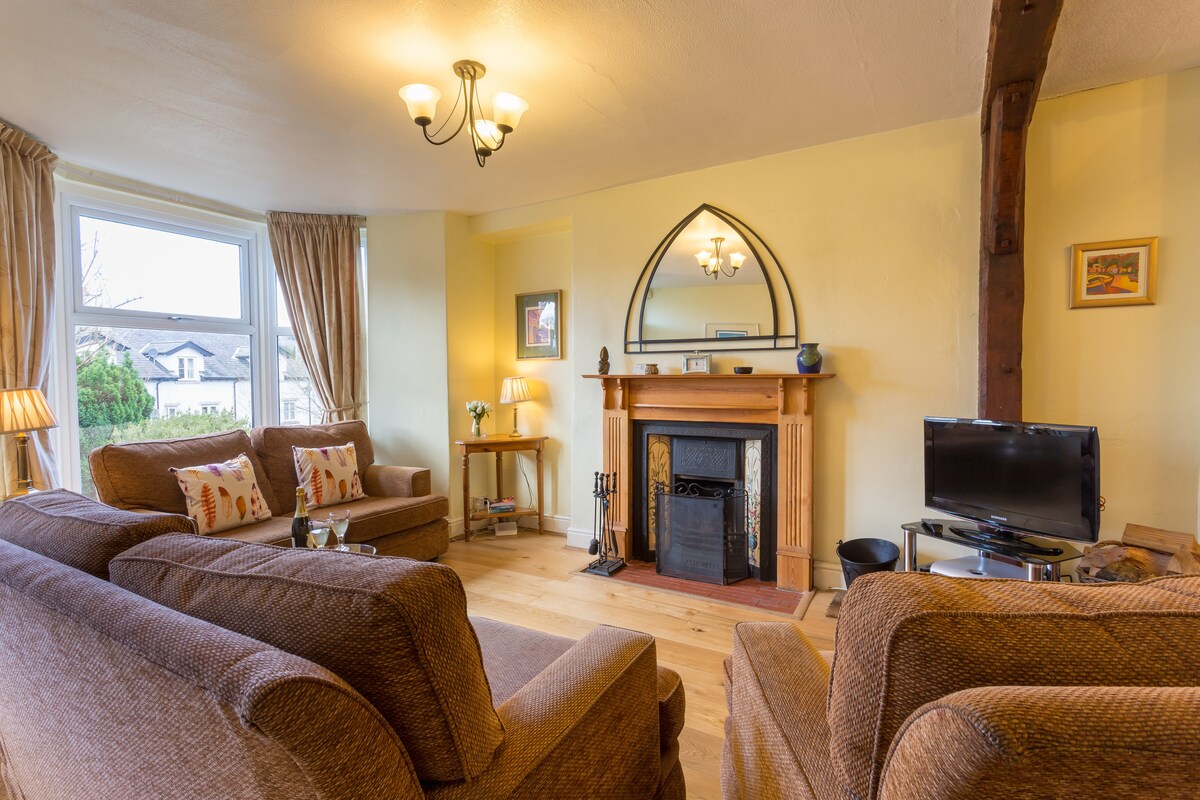 Itinayo noong 1878, ang aming tradisyonal na cottage sa Lakeland ay may 2 pribadong paradahan at matatagpuan sa gitna ng Windermere, isang minutong lakad mula sa mga tindahan, restawran at pub. Ito ay isang mahusay na itinalagang cottage na may estilo ng bansa na nag - aalok ng espasyo at magagandang tampok. Mayroon itong pribadong patyo na may mga muwebles sa kainan sa likod. Nasa unang palapag ang sala, kusina, at silid-kainan. Nasa ikalawang palapag naman ang 3 kuwarto at 2 bagong banyo. Nasa silong naman ang silid‑TV at utility room.