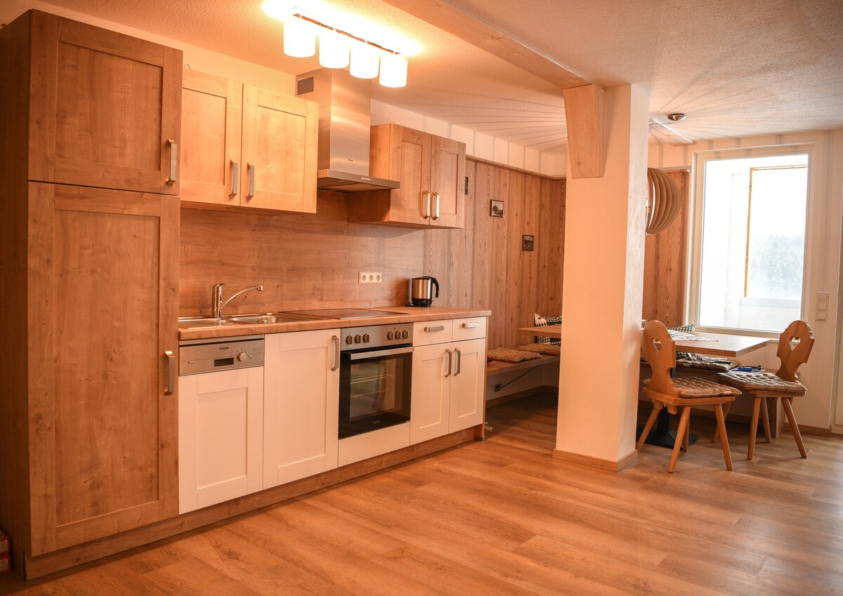 Apartment na nilagyan ng maraming simbuyo ng damdamin at pansin sa detalye. Ang perpektong lugar upang makapagpahinga sa crackling coziness. Maluluwang na lugar, para sa maraming kapayapaan at privacy. Ang espesyal na highlight: May pribadong fireplace at maraming librong puwedeng i - browse ang sala. Ang bawat kuwarto ay puno ng liwanag, hangin at liwanag. Mula sa bawat kuwarto, puwede mong direktang ma - access ang balkonahe kung saan matatanaw ang kamangha - manghang kalikasan. Ang mga hiking trail ay nagsisimula mismo sa bahay.