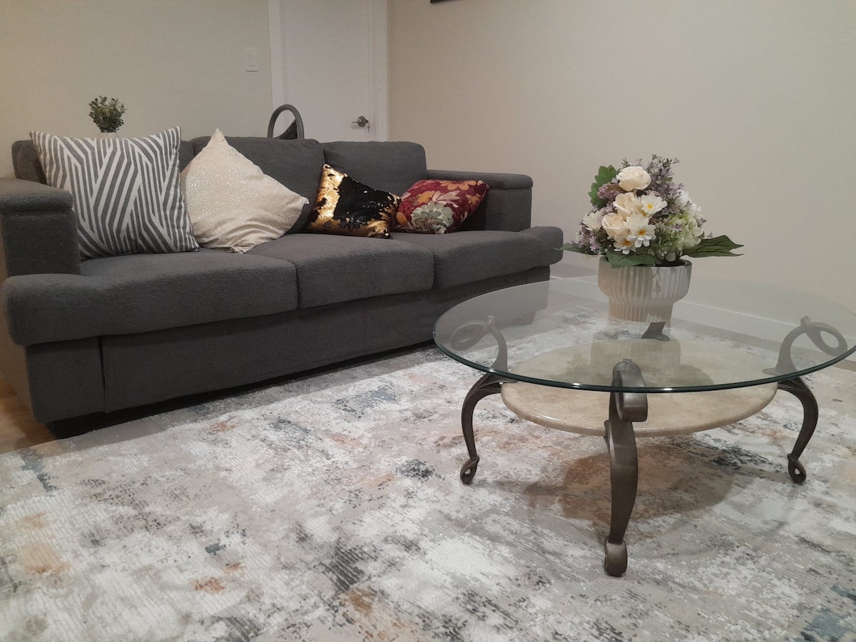 Experience luxury and convenience at its finest with this tastefully furnished one-bedroom walkout basement in Bridgewater. Amenities include: Dryer & Washer Wifi TV + PS5 King Size bed Parking for one car Well-equipped Kitchen with microwave, fridge & freezer, blender stove, microwave coffer maker etc But the amenities don't stop there. Relax and rejuvenate in the massage chair, stay charged with the electric vehicle charger (at a fee), or break a sweat on the exercise bike.