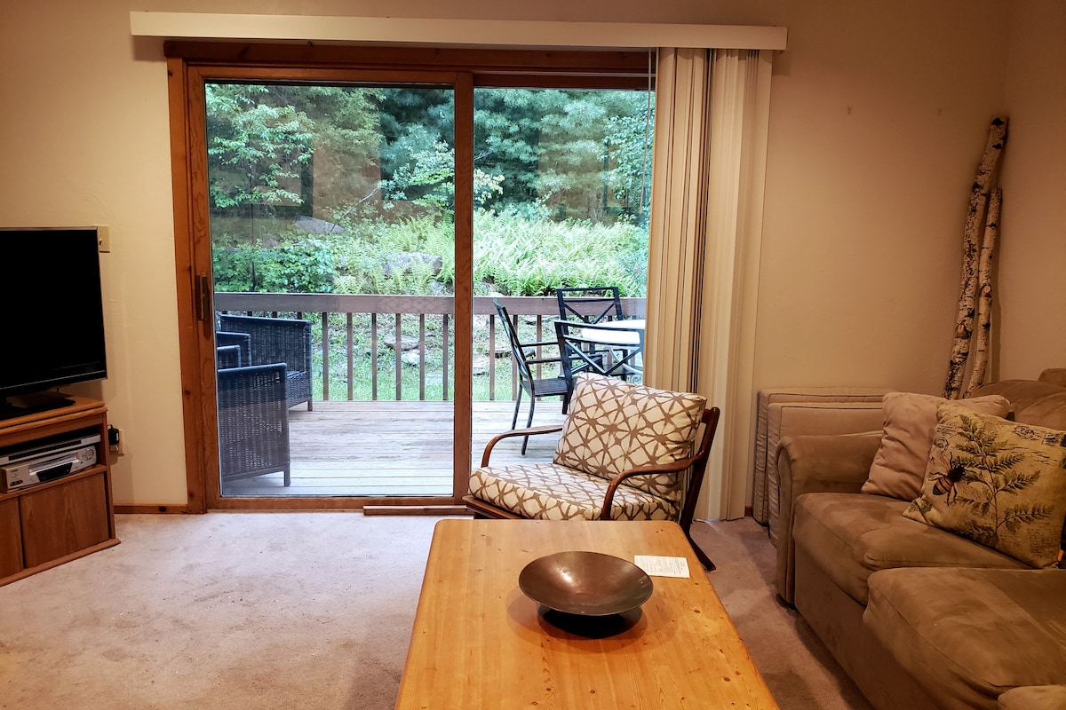 Slopeside Condo na may kahoy na fireplace