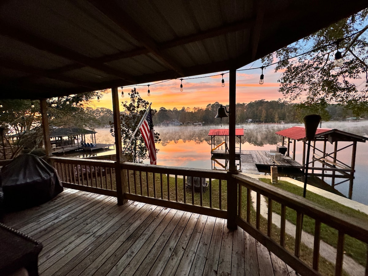 Matatagpuan may 2 oras lang mula sa Houston, perpektong bakasyunan ang aming maliit na bakasyunan sa lake house. Kung masiyahan ka sa pag - upo sa paligid ng apoy kasama ang pamilya at mga kaibigan, pagpindot sa lawa para sa pangingisda, kayaking, paddleboarding, o lamang lounging sa malaking lumulutang na banig ng tubig, kami ay sakop mo. Sa pagtatapos ng araw, sunugin ang Traeger grill o Traeger Flatrock griddle at mag - enjoy sa kainan sa deck habang kinukuha ang mga kamangha - manghang tanawin ng lawa habang lumulubog ang araw. Lumabas at gumawa ng ilang mga alaala!