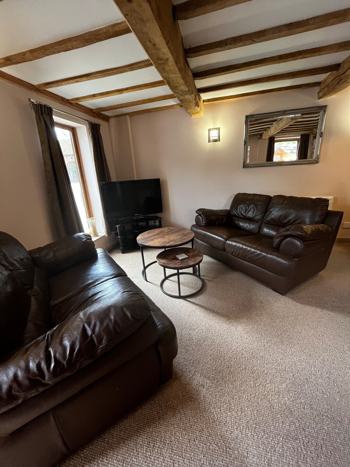 Nasa kanayunan ang bagong ayos na unit na ito na nasa unang palapag at kumpleto sa kailangan. Binubuo ang property ng kumpletong kusina at sala, shower room, at kuwarto (king size na higaan). May nakatalagang paradahan ang mga bisita. Pribadong pasukan na may keylock. Mayroon ding pribado at ganap na nakapaloob na hardin ang property. Mainam para sa mga naglalakad o naghahanap lang ng tahimik na bakasyon. Malapit sa pamilihang bayan ng Ledbury. Tamang-tama para sa pagbisita sa Malverns o Cotswolds.
