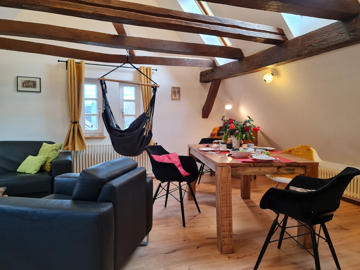 Matatagpuan ang apartment na "Nasa puso", gaya ng ipinapahiwatig ng pangalan, sa gitna ng Schöllbronn. Ito ay matatagpuan sa isang bahagyang makasaysayang gusali, na sa panahon ng pambobomba ng Pranses sa World War II ay nagbigay ng proteksyon sa mga nakapaligid na kapitbahay sa kanyang vaulted cellar. Mahalagang paalala: Ang presyo para sa isang batang wala pang 2 taong gulang ay 10,00 Euro at babayaran sa pagdating.