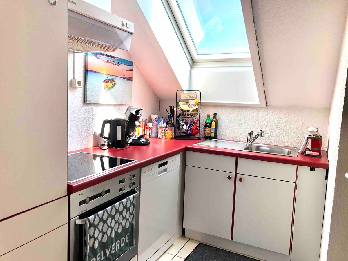 Maligayang pagdating sa aming bagong kagamitan at naka - istilong 2.5 kuwarto na pang - itaas na palapag na apartment sa Eggingen! Maluwang na sala na may smart TV at Wi - Fi (kasama ang. Inaanyayahan ka ng Netflix UHD na magrelaks. Nasa kusinang kumpleto ang kagamitan ang lahat ng kailangan mo para makapaghanda ng mga paboritong pinggan. Ginagarantiyahan ng isang silid - tulugan na may box - spring na higaan ang maayos at nakakarelaks na pagtulog sa gabi. Mga 5 minuto lang ang layo ng hangganan ng Switzerland, may magandang restawran sa iisang gusali - ano pa ang gusto mo?