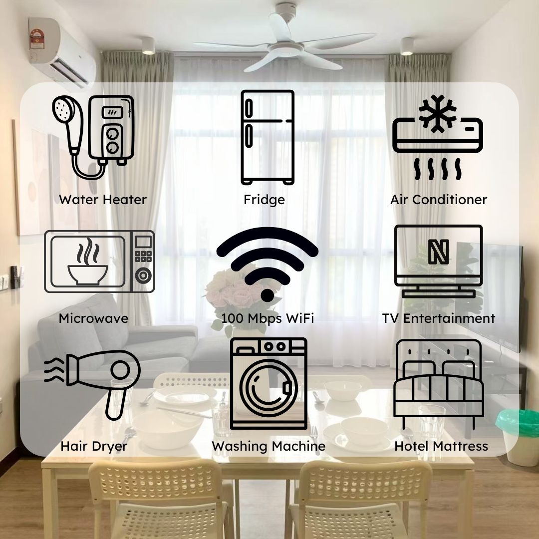 Matatagpuan sa KIP Core Soho, Bagong Gusali, Pinakamalapit na KLIA & KLIA2, napakalinis na nakapaligid. Madiskarteng matatagpuan sa Kota Warisan, Sepang na may iba 't ibang amenidad na mae - enjoy sa panahon ng pamamalagi mo. Sa loob ng maigsing distansya papunta sa - KIP Mall, 24h KFC, 24h McDonald, 24h clinic, 24h laundry,dental clinic, pharmacy, Burger King, Pizza Hut, Family Mart, Domino Pizza, money changer upang mapaunlakan ang iyong mga pangangailangan. Maaaring gamitin ng bisita ang lahat ng pasilidad sa gusali hal., swimming pool, gym room, at residensyal na paradahan ng kotse.
