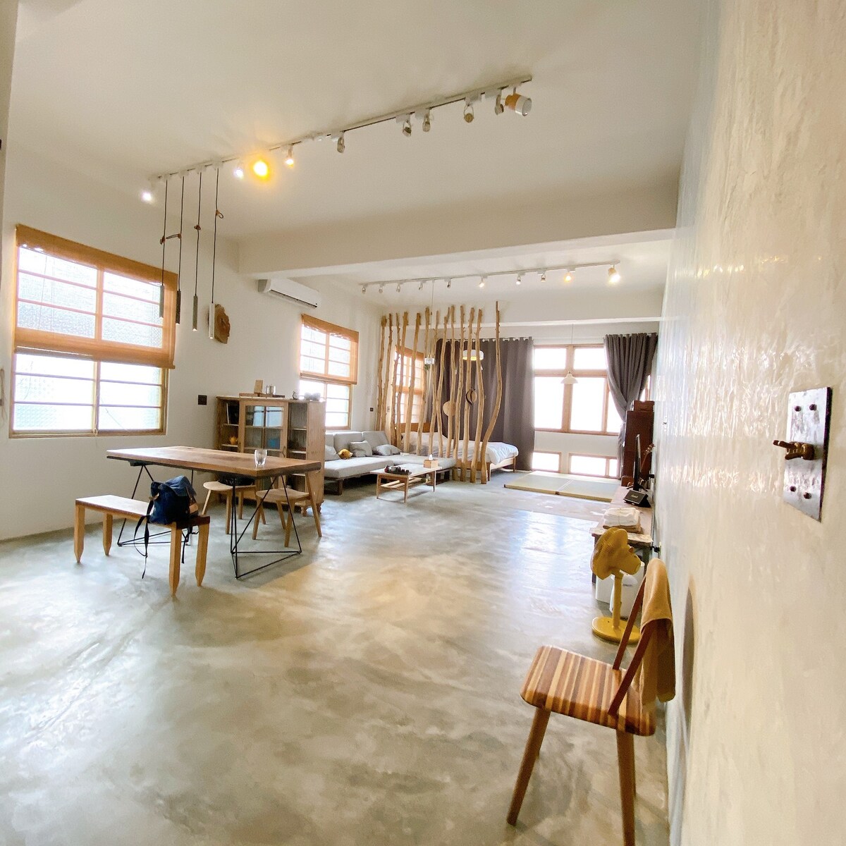 Ang lumang bahay sa sentro ng lungsod ay inayos upang magpakita ng natatanging espasyo sa tirahan ng LOFT. Ang loob ng listing ay maluwag at maliwanag, at ang iyong sariling kusina ay nilagyan ng mga pangunahing kasangkapan (malaking refrigerator.Microwave oven. Induction cooker.kasingliit ng kaserola), sa umaga, maaari kang magluto ng iyong mga paboritong pagkaing walang mantika sa kalapit na maliit na pamilihan, kahit na hindi mo nais na lumabas, maaari mo pa ring maramdaman ang pagiging maluwag ng Hualien sa loob ng bahay ... Ang listing ay eksklusibo para sa iyo at sa iyong mga kasama, ilang hakbang lamang ang layo sa mga kainan, at humigit-kumulang 12 minutong lakad ang layo sa Dongdaemun Night Market. Walang elevator sa loob ng bahay May king size bed at sofa bed sa kuwarto, at may dagdag na bayad para sa mga bisita na gagamit ng sofa bed. Limitado ang libreng parking space, kailangan ng paunang reserbasyon Hindi pinapayagan ang mga bisita at mga bata Ang uri ng kuwarto ay depende sa availability sa araw na iyon ** Mangyaring basahin ang iba pang mga bagay na dapat tandaan bago mag-book, ang pag-order ay ituturing na pagsunod sa mga alituntunin ng listing **