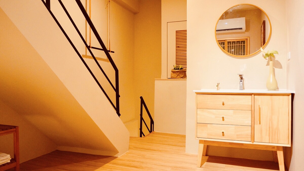 Nais mo bang maranasan ang kaginhawa at kaginhawa ng Hualien, na napapalibutan ng mga bundok, at maglakbay sa mga alley ng mga cafe? Madali ang lokasyon, may mahusay na mga pasilidad, 3-5 minutong lakad papunta sa kalapit na Dongdaemun Night Market at Nanbin Park. Nakatago sa isang alley ng mga cafe, ang isang lumang bahay ay na-renovate sa loob ng 2 taon, na muling nabigyan ng bagong buhay ng mga kahoy, na may retro na bahay at bagong Japanese-style na walang tatak na Zen. Ang bawat sulok ng bahay ay may amoy ng kahoy, na parang nakatira sa isang munting gubat sa lungsod, kung saan maaari kang mag-enjoy nang walang pag-aalala, sa isang kapaligiran na walang lason at walang alalahanin, para mag-relax at maghanap ng sarili mong ritmo, at harapin ang susunod na paglalakbay o buhay nang may karunungan. Ito ay isang lugar kung saan maaari kang mag-relax at mag-enjoy, na may sukat na humigit-kumulang 17 sqm at taas na humigit-kumulang 3 metro, na maaaring gamitin ng 2-6 na tao, na matatagpuan sa ikalawang palapag (hindi kailangang makipagkita sa host kapag pumapasok mula sa gilid ng kalye), na may smart lock para sa pagpasok at paglabas, at may sariling banyo, silid-tulugan, sala, at kusina. Sa loob ng bahay, maaari kang mag-enjoy sa paggawa ng kape, paggawa ng tsaa, pagluluto, audio-visual equipment, yoga at iba pa. Para sa dalawang gabi o higit pa, maaaring magpareserba ng motorsiklo at bisikleta.