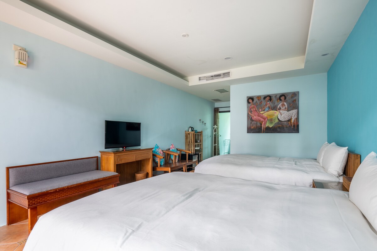 Haiyan face to Pacific Ocean, One living room & Bed room . Bathroom of course with kitchen, suggest you can buy some for cook from city before you check in..cos not easy to shop there. with free wifii ,Bluetooth audio and TV Channels. when you lie one bed can see forest and ocean view, if get up early can see sunrise...:) if want go to beach , just go down and cross the road 11 (3 mins), you can arrive beach. this is a aboriginal area, so neighbor all Amis Group they are friendly.