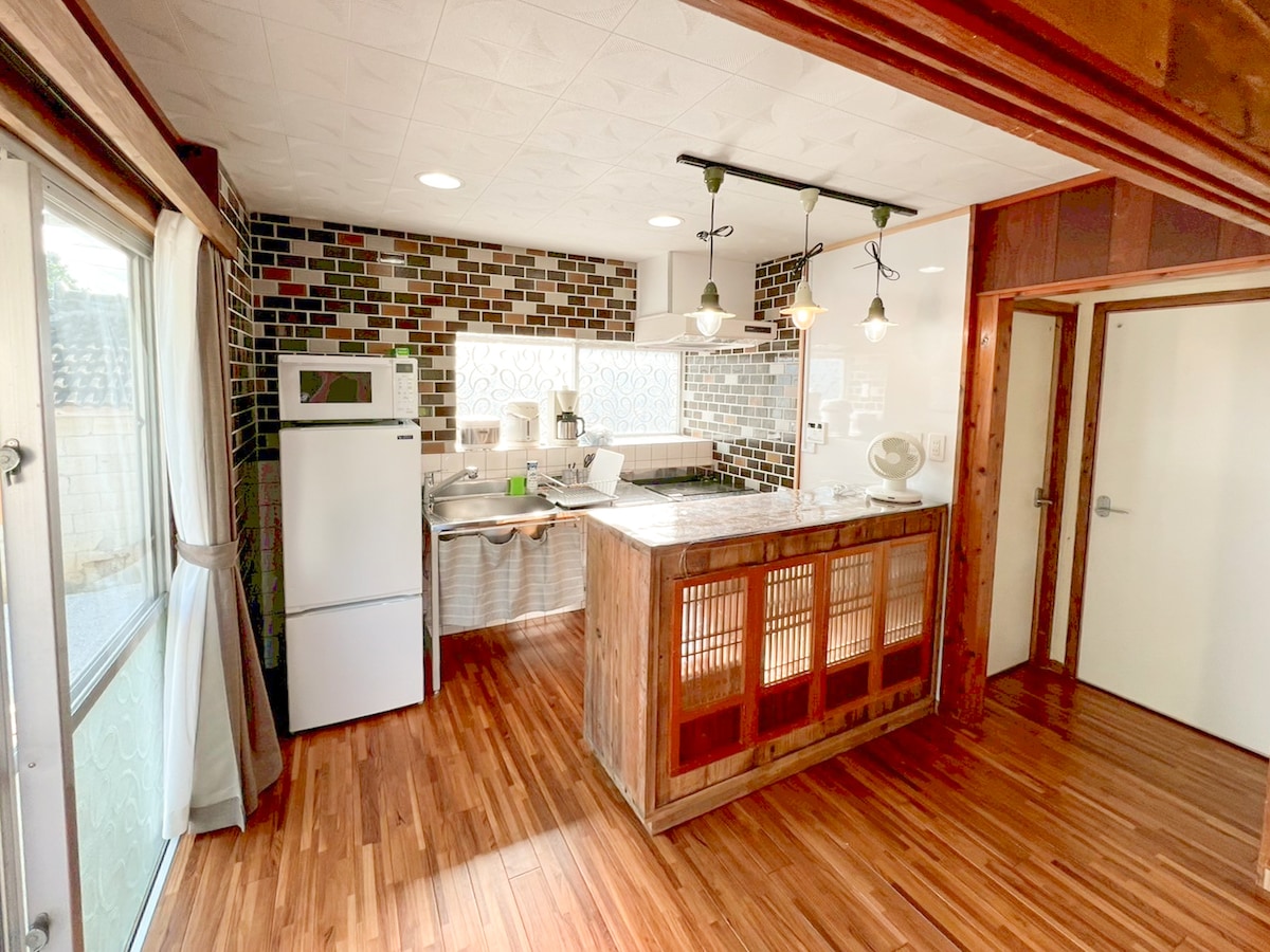 Tradisyonal na bahay sa Okinawa ang itsura ng labas pero inayos ang loob noong 2025 at bagong‑bago na ito ngayon. Pinapanatili nito ang ganda ng lumang bahay sa Okinawa habang nag‑aalok ng komportable at nakakarelaks na tuluyan. Matatagpuan ito sa isang residential area na 15 minuto lang ang layo sa Nago City kapag sakay ng kotse, at inirerekomenda ito lalo na sa mga bisitang paulit‑ulit na bumibisita sa Okinawa. Tuluyan 40㎡ ang laki ng kuwarto. ◆Banyo at Toilet •1 shower lang •Shampoo / Conditioner / Sabon sa katawan •Washing machine / Lababo •1 toilet