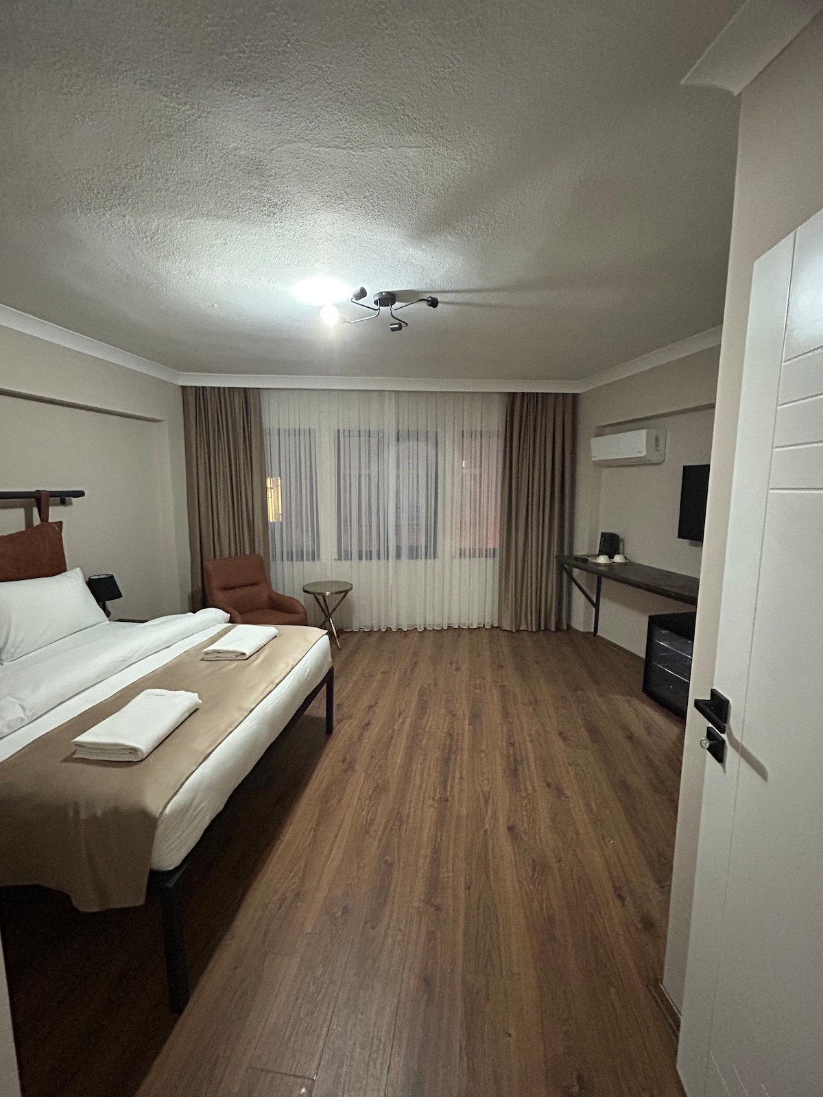 Puwede kang mamalagi nang komportable at komportable sa maluwag at maluwang na studio room para sa dalawa sa aming boutique hotel. May double bed ang kuwarto namin. Nilagyan ito ng smart TV at air conditioning. Mayroon kaming serbisyo ng WiFi. Nasa serbisyo mo ang 24/7 na pagtanggap. Bagama 't maganda ang lokasyon ng aming boutique hotel, nasa kalye ito ng mga cafe, na madalas puntahan ng mga kabataan.