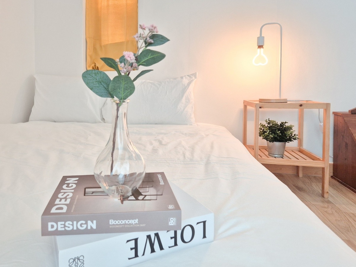 [House 204] - 3 -5 minutong lakad ang layo ng Hongik University Station at malapit ito sa pangunahing kalye. - May 12 taong elevator ang gusali na madaling makakapaglipat ng malalaking bag. - Palaging hugasan bilang karaniwang opsyon para sa bawat bisita ang lahat ng de - kalidad na sapin sa higaan (mga sapin sa higaan, duvet cover, takip ng unan). - Kinokontrol ng mga bisita ang temperatura ng air conditioner sa tag - init at ang boiler sa taglamig nang direkta mula sa kanilang mga kuwarto. - Itinayo ang gusali noong 2023 at malinis ito.