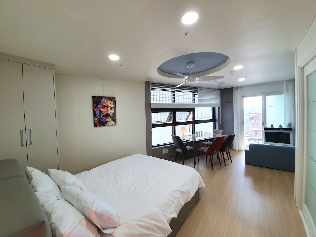 ❤Haeundae * Tanawin ng Karagatan * Netflix ☆Inayos☆❤ ♠︎ 1 minuto ang layo mula sa white sand beach at Gunam ♠- ro ︎ ♡♡ Hotel room