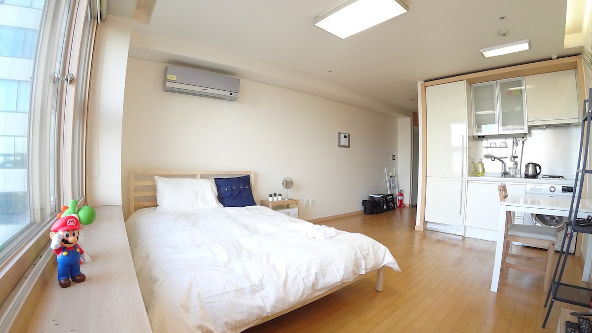 Sim - Stay: Isang komportable at malinis na lugar para makapagpahinga sa sentro ng Suwon. Pang - araw - araw na hugasan ang mga sapin sa higaan para sa iyong kaginhawaan. Kasama ang Netflix at Nintendo Switch. 1 minutong lakad papunta sa malapit na may bayad na paradahan. 10 -15 minuto sa pamamagitan ng kotse (20 minuto sa pamamagitan ng bus) sa Suwon Hwaseong Fortress, Gwanggyo Lake Park, at Aqua Planet. 25 minuto sa pamamagitan ng bus papuntang Everland at Starfield Suwon. 10 minutong lakad papunta sa Ajou Univ., ospital, at istasyon ng pulisya. Ligtas at maginhawang lokasyon para sa iyong biyahe!