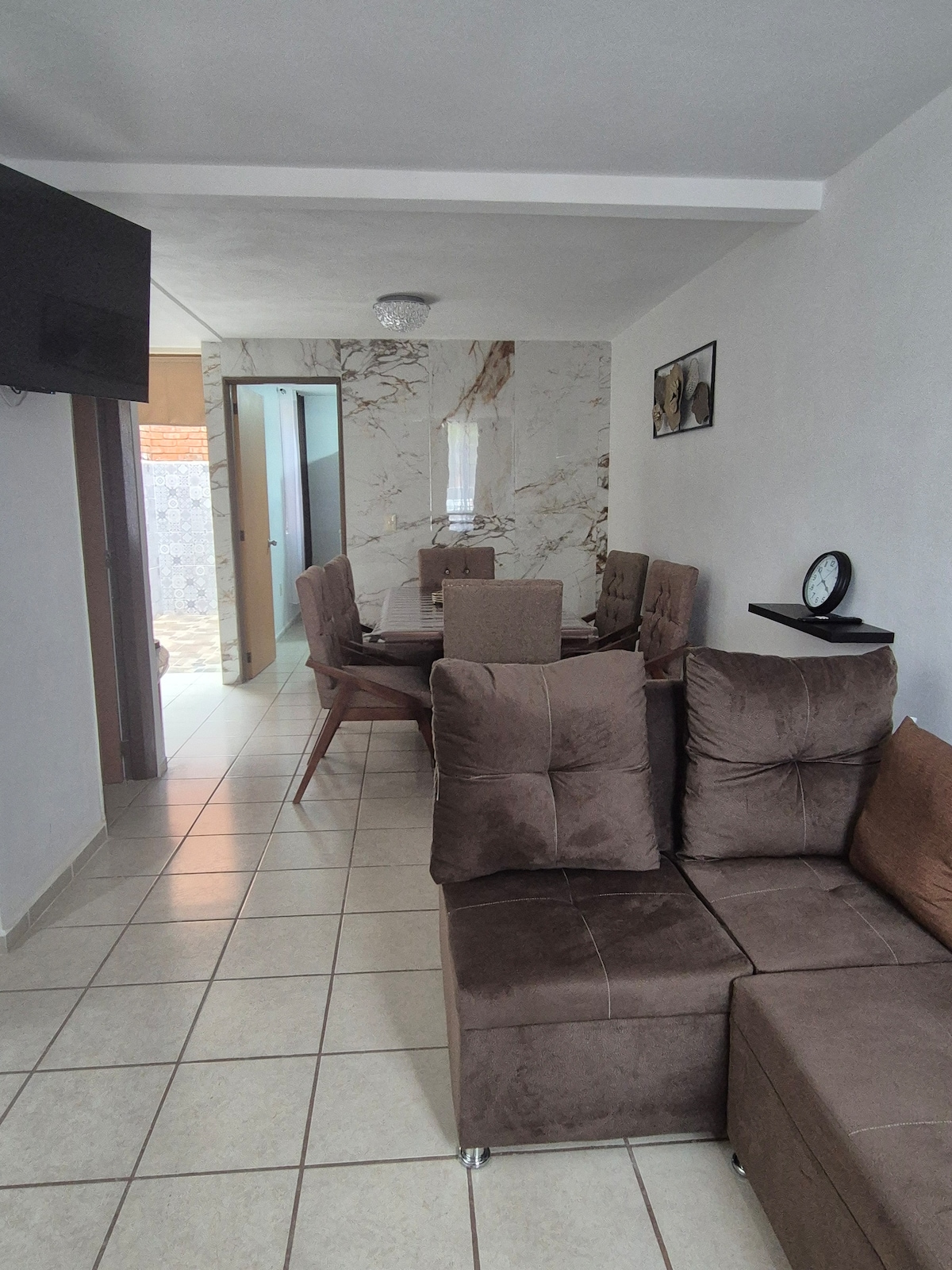 3 silid - tulugan na may 1 Queen bed, 1 double bed at 1 single bed ayon sa pagkakabanggit. 2 Ground Floor Sofas - cama. 1 buong banyo sa Main Room, 1 buong banyo para sa Mga Kuwarto 2 at 3 at 1/2 banyo sa sala. Kumpletong kusina. Panloob na patyo na may labahan (hindi kasama ang washing machine). WIFI 57 Mbps at 2 - seat desk. Saradong paradahan para sa 2 compact o 1 medium na sasakyan. Mainam para sa mga Alagang Hayop. Mga lingguhan at buwanang diskuwento. Facturamos.