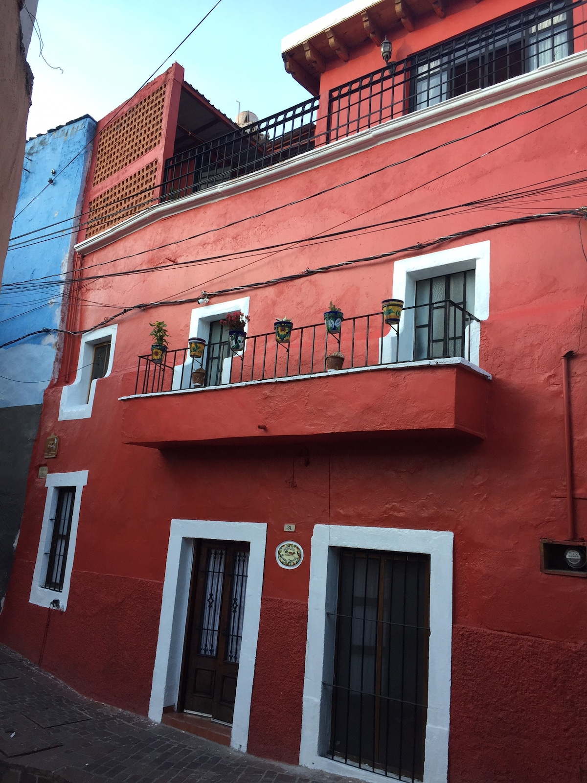 Casa localizada en un callejón peatonal del monumento al pipila. La casa tiene una de las mejores vistas de toda la ciudad lo cual la hace una estancia única. Con cama king size y un hermoso balcón con vista panorámica. La casa se encuentra en medio de un jardín frondoso que permite la privacidad en todo momento. La casa cuenta con dos salidas, a 10 minutos caminando colina abajo del centro de la ciudad y a 4 minutos colina arriba del mirador del Pipila.