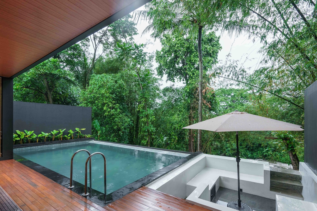 Tinatanggap ka namin sa aming napakaganda, maganda at magandang tanawin ng ilog na pribadong villa. Matatagpuan sa isang lugar na puno ng katahimikan at hindi kalayuan sa sentro ng lungsod. Iba 't ibang mga pasilidad na nagpaparamdam sa iyo ng bahay at ginagawang mas komportable at kasiya - siya ang iyong bakasyon. Mga pasilidad tulad ng pribadong swimming pool na may tanawin ng ilog, panlabas na lugar ng pagtitipon, bathtub, sala, kusina, coffee machine, komportableng sofa at iba pa. Ang perpektong lugar para gumawa ng mga alaala kasama ng iyong pamilya o mga mahal sa buhay!