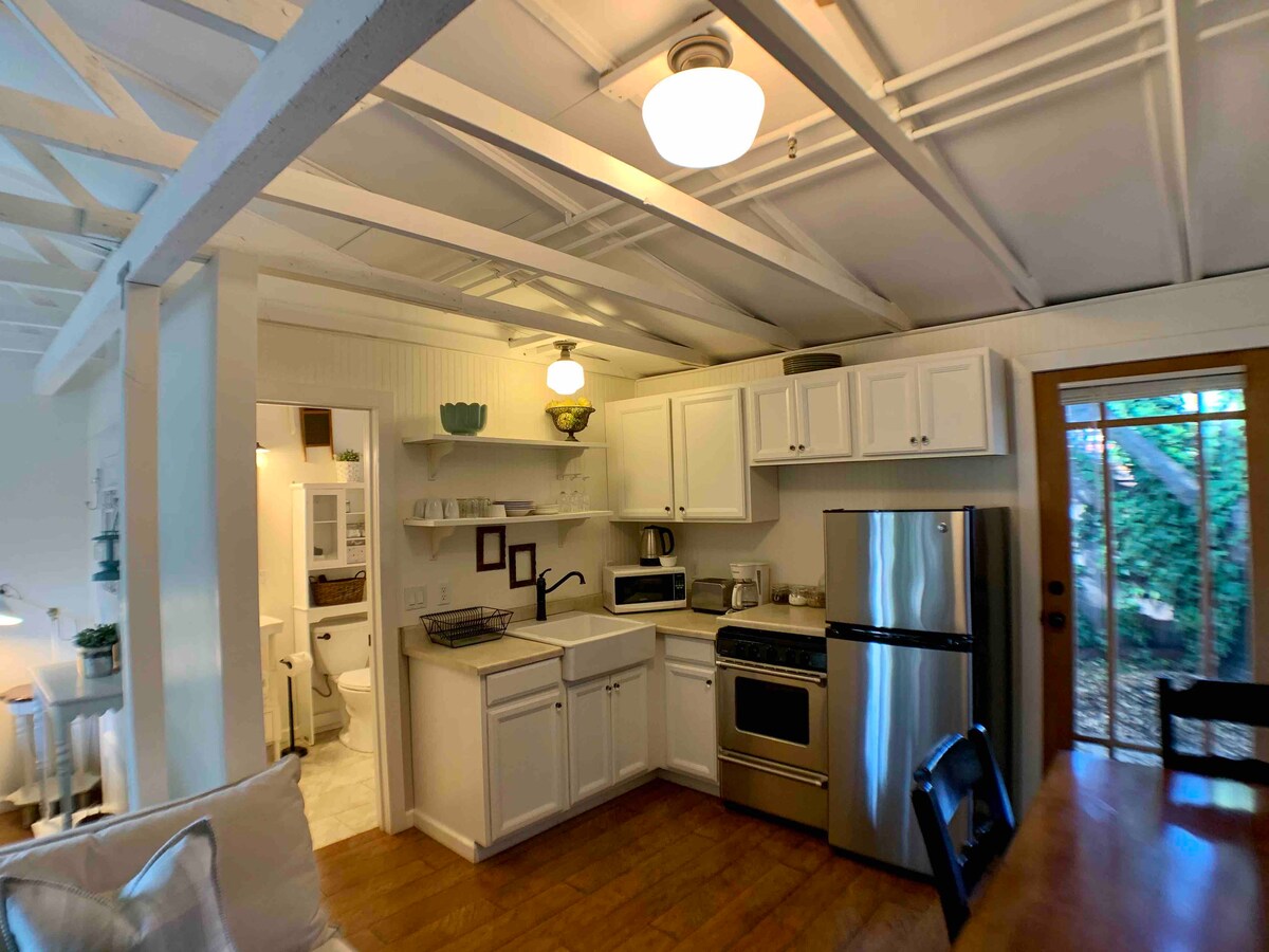 Clean, comfortable space on our Farmhouse property dating back to 1880. Comfy queen bed, full bathroom, kitchen, stove/oven, microwave, toaster, coffee & tea, dinette, tv area and IKEA queen sofa/bed. Beautiful patio with fire pit, several nice seating areas. For 2+ nights stay, enjoy a complimentary glass of Napa Cab on arrival and take advantage of special arrangements at our partner wineries! Enter exact number of guests for pricing, $60 per person nightly after 2. No children, no pets.