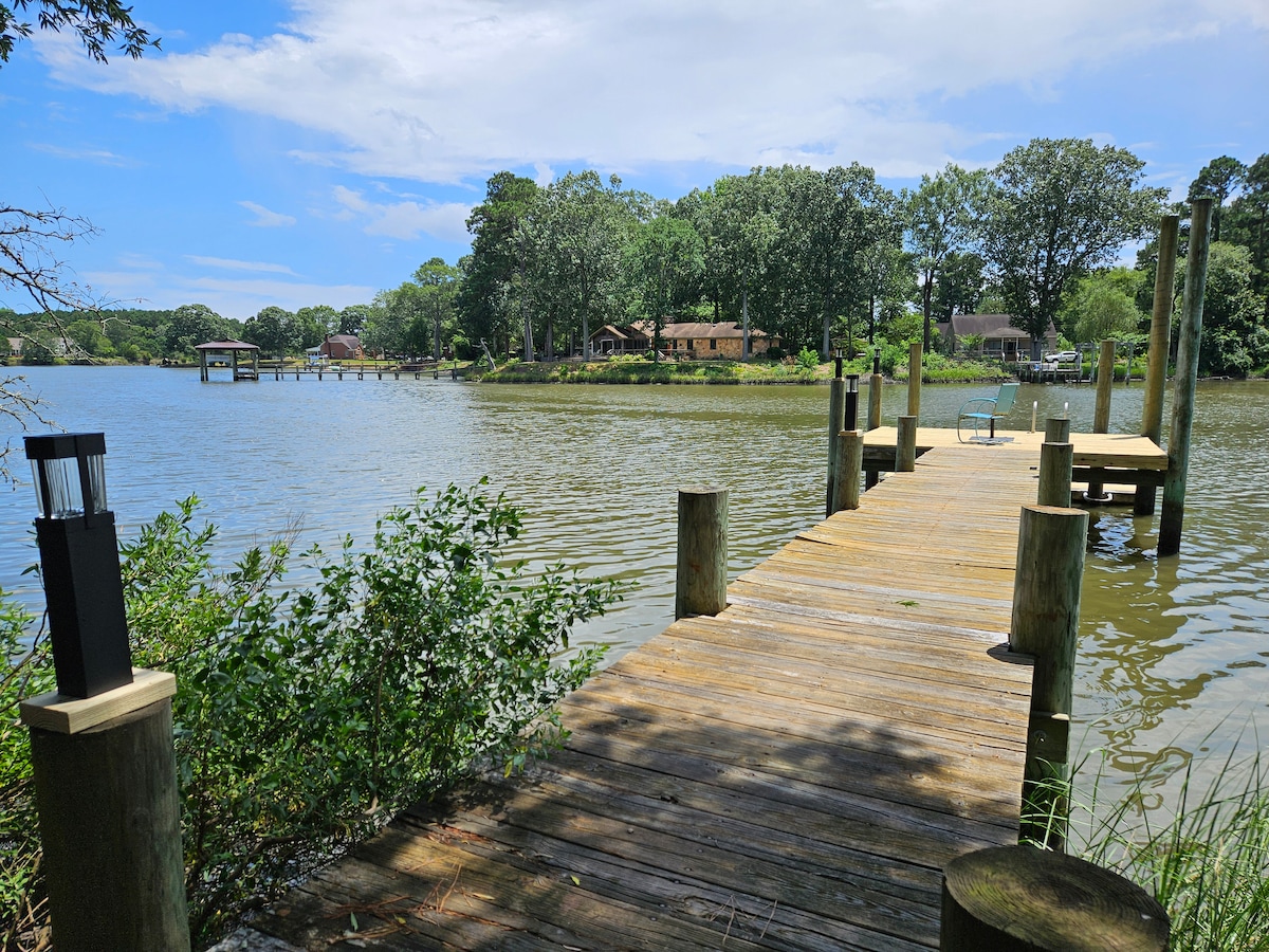 Mag‑enjoy sa ligtas na kanlungan ng mga hayop sa tabi ng tubig‑alat ng Chesapeake Bay. Mangisda sa pribadong pantalan na may propane firepit, habang sumasakay sa mga alon gamit ang canoe kayak o tandem. Aabutin nang 7 minuto ang WhiteHouse Cove Marina. Ang Yorktown Beach ay 22 minuto, ang Buckroe Beach sa 28 minuto. Parehong may malambot, puti, at malinis na buhangin ang dalawang beach. Nasa 12 minuto. Riverside Hospital 20 minuto. 27 minuto ang layo ng Colonial Williamsburg at Busch Gardens! Virginia Beach 47 minuto!! May malubhang allergy sa mga aso ang anak ko. HINDI PINAPAYAGAN ANG MGA ASO!!