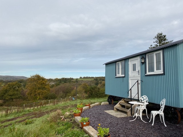 A self contained secluded luxury Shepherds Hut sleeps two near the Brecon Beacons national park with delightful valley views. Situated on a small working farm eight miles from Junction 49 at the western end of the M4. Enjoy the seclusion of the farm and walking opportunities in the area as well as the local attractions in East Carmarthenshire of castles, stately homes, gardens, local villages and towns. Further afield are the beaches and beauty spots of Swansea, the Gower and Pembrokeshire.