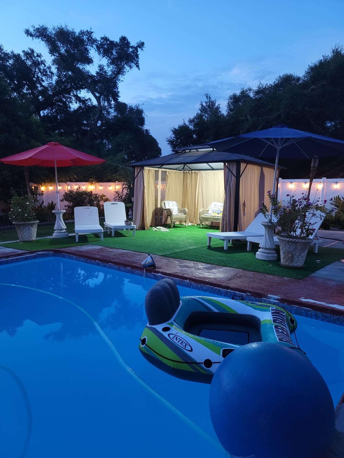 THE SENSATION OF TAMPA is a private 50x12 modern shed converted into a cozy guest suite with fenced patio and separate entrance. Located in a quiet area of Temple Terrace. Perfect for couples seeking a peaceful getaway. • 5 min to Busch Gardens • 10 min to Downtown Tampa • 10 min to Seminole Hard Rock • Easy access to I-4 & I-75 Includes: ✔ Private patio & gazebo ✔ Modern kitchen ✔ Living area ✔ Private bathroom ✔ Queen bed ✔ Shared pool (10 ft) ✔ BBQ Max 2 registered guests.