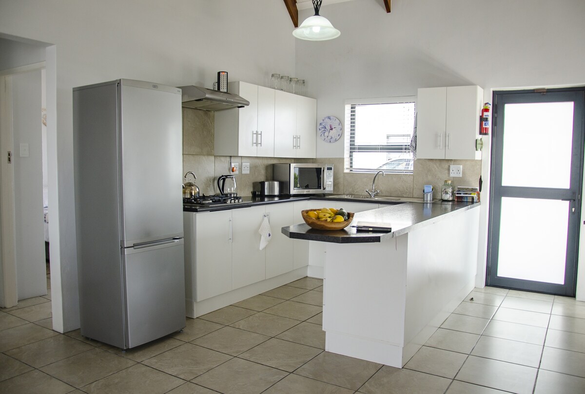 "Escape to Klein Griekebaan, isang kaakit - akit na cottage na ilang hakbang lang mula sa lagoon – perpekto para sa mga surfer at pamilya ng saranggola! Masiyahan sa disenyo nito na inspirasyon ng Greek, isang kamangha - manghang outdoor braai area, at komportableng panloob na tampok na fireplace at kumpletong kusina. May espasyo para sa dalawang may sapat na gulang at dalawang bata, kasama ang Pearly's Restaurant at napakaraming iba pang Restawran na maikling lakad ang layo, ito ang perpektong bakasyunan!"