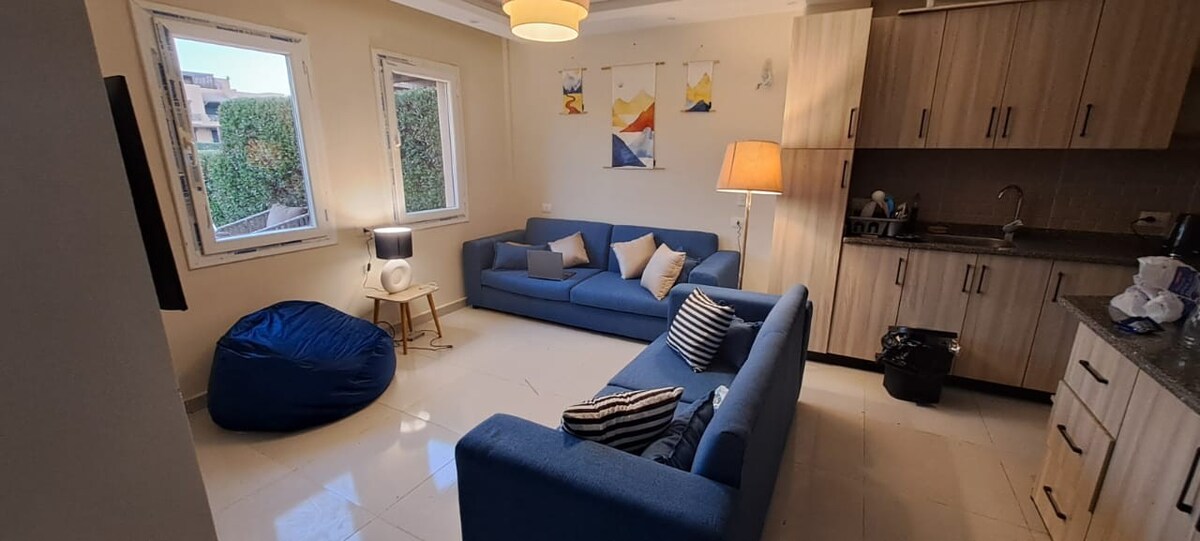 Maluwang na 4BR townhouse sa Mountain View Sokhna 1, para sa mga pamilya LAMANG (max 8 na may sapat na gulang). 2 master room, 3 banyo, sala na may smart TV at IPTV, kumpletong kusina, at malawak na hardin. Direktang nasa harap ng pool, Malapit sa heated pool, 3 minutong lakad (~300m) papunta sa beach. Mga amenidad sa village: Malapit sa play area ng mga bata sa Dayra Camp, football pitch, clubhouse, supermarket, watersports at marina. Mga pamilya LANG.