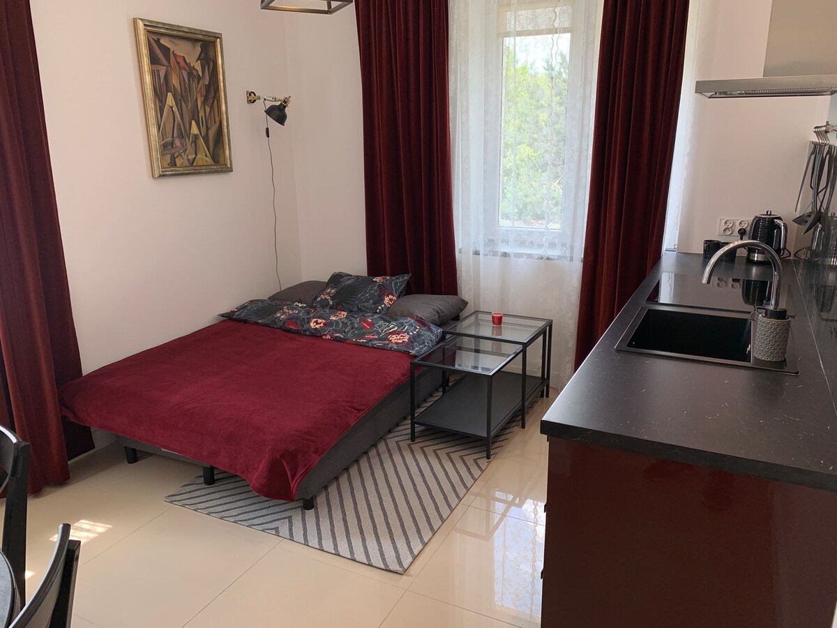 Isang maginhawa at modernong apartment sa isang pribadong bahay sa Ząbki malapit sa Warsaw. Ang apartment ay nasa ikatlong palapag. Perpekto para sa apat na tao, kumpleto ang kagamitan. May libreng parking lot na hindi naka-guard. Ang apartment ay may dalawang single bed, double sofa bed, wardrobe, internet na may wi-fi, smart TV. Posibleng magdagdag ng baby cot. Kusina (ceramic hob, refrigerator). Banyo na may shower.