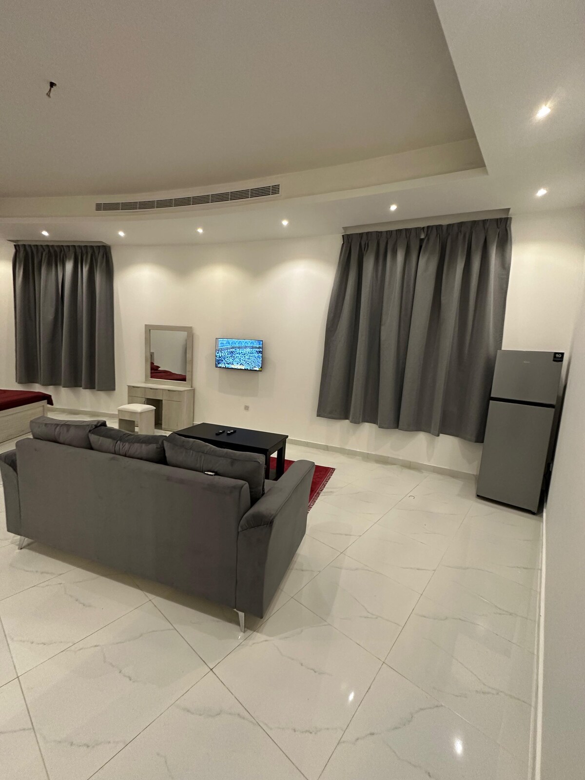 Isang malaking apartment na kumpleto ang kagamitan at may 2 kuwarto sa gitna ng Al Ain. Mabilis at maaasahang WiFi na available, ~500 Mbps fiber. Angkop para sa mga panandaliang o matatagal na pamamalagi at malapit sa mga tindahan, restawran, café, at mall. May sala, dalawang banyo, at kusinang kumpleto sa gamit na may refrigerator, kalan, at washing machine ang unit. May AC sa bawat kuwarto at may 65‑inch na smart TV sa sala. Malinis at maginhawa para sa mga pamilya at bisita, na may madaling pag-check in at mabilis na suporta.