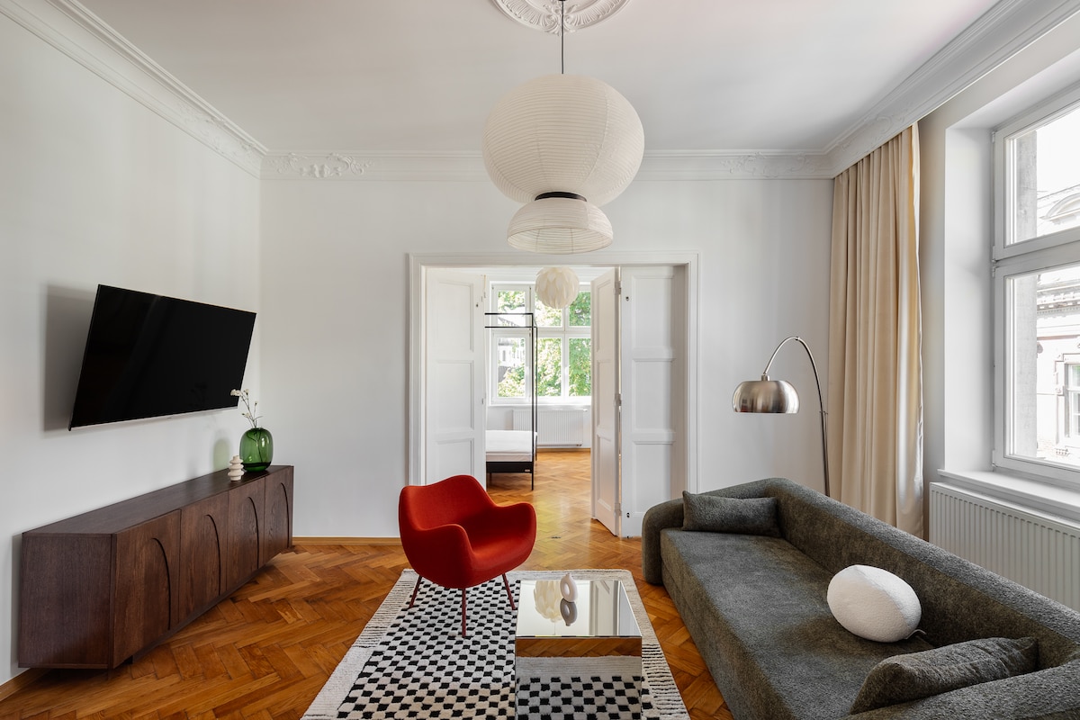 Nasa magandang inayos na makasaysayang townhouse na itinayo noong 1910 ang apartment. Talagang espesyal ang lokasyon nito, na nasa pagitan ng Old Town at makasaysayang Jewish Quarter, na parehong tatlong minutong lakad lang ang layo. Napakaraming café, bistro, at bar na puwedeng puntahan sa paligid pero tahimik pa rin ang kalye. Tatlong hinto lang ng tram ang layo ng pangunahing istasyon ng tren, at nasa maigsing distansya ang istasyon ng tren sa labas ng lungsod na may direktang koneksyon sa airport.