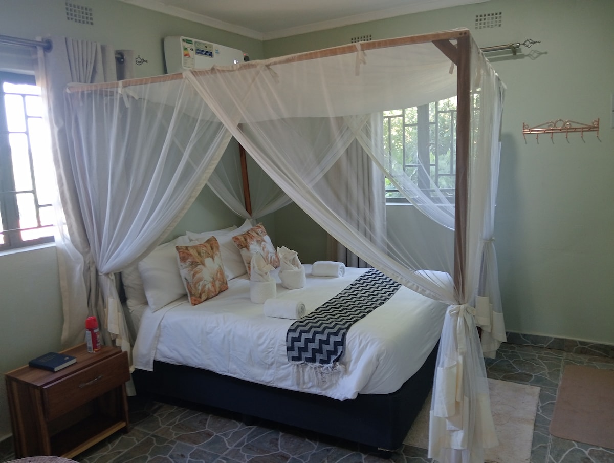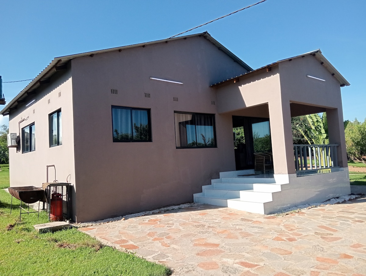 Ang magandang bagong gawang self - contained na cottage na ito ay ang perpektong lugar para magrelaks. Matatagpuan 100km mula sa Livingstone ginagawang naa - access at isang magandang lugar upang ihinto at magpahinga kung ikaw ay self - driving. Tahimik at tahimik , kung saan matatanaw ang dam at bukid ng mga strawberry. Access sa pool at bangka para sa pangingisda at paglubog ng araw. Mayroon ding menu ng pagkain para sa almusal, tanghalian at hapunan. Para sa mga foodie, may opsyong gumawa ng klase sa pagluluto kasama ng lokal na chef, bagong inaning mula sa bukid ang ani.