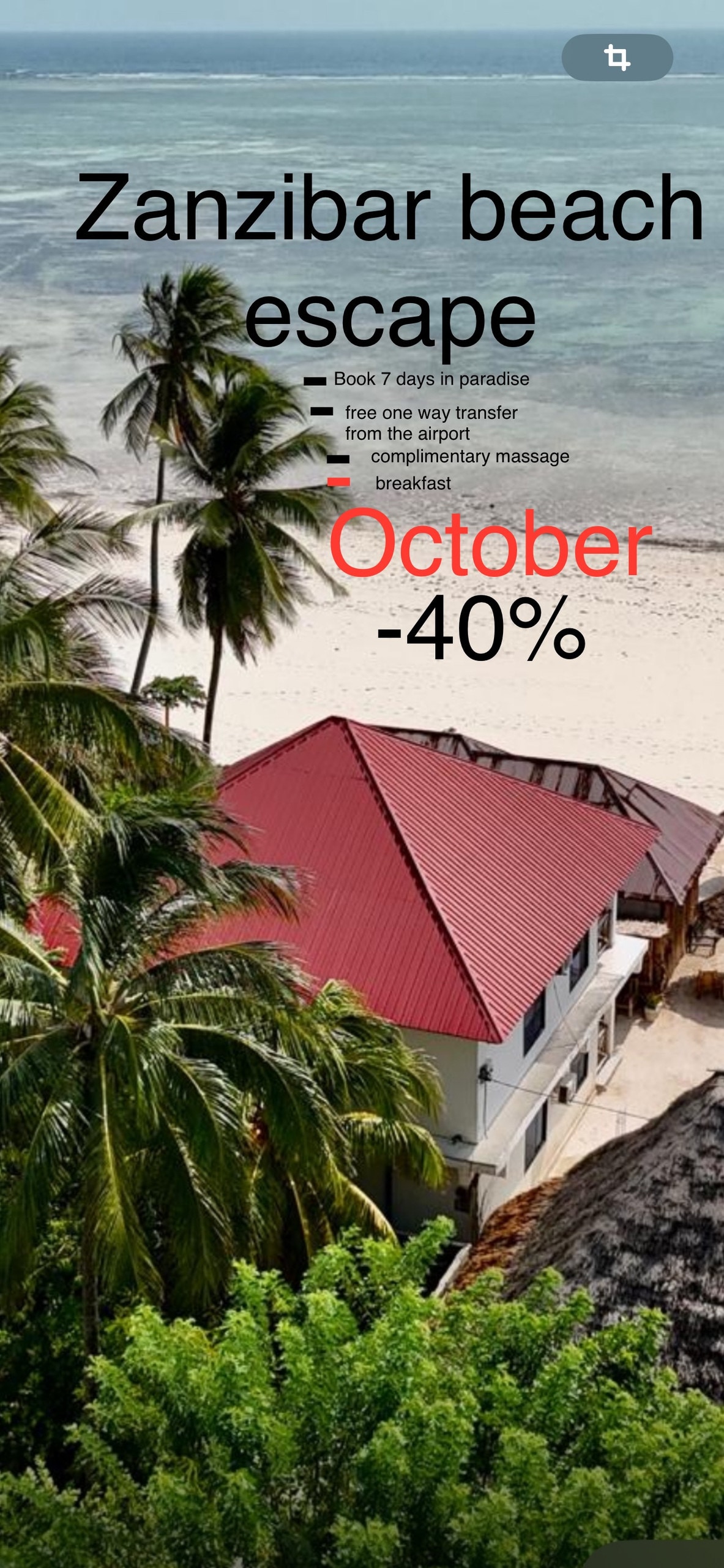 Our property is the ideal oasis for your African holidays, located in the northern part of Kiwengwa Located just at 150 meters from the magical beach of Kiwengwa, our place offers fully equipped apartments surrounded by tropical gardens with a wonderful pool -The apartments are furnished with AC comprising a seating area with a sofa, a dining area, and an equipped kitchen. - Our private beach equipped with humbrellas and sunbeds is included in price - Service of breakfast: 10 USD per person