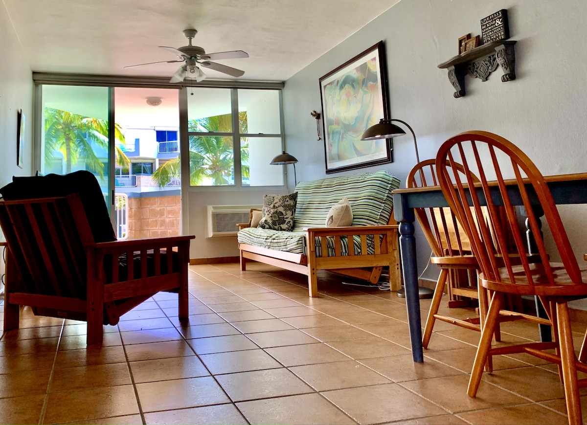 Ang natatanging apartment na ito ay may sariling estilo. Maaliwalas at romantikong kapaligiran para sa isang couples retreat, pamilya na angkop , tinatanggap ang mga sanggol. Tanawin at access sa kamangha - manghang Ocean at Golf course. Caribbean weather sa buong taon. 15 minutong biyahe papunta sa EL YUNQUE rainforest. Ilang minuto lang ang layo ng mga pangunahing supermarket, outlet mall, at magagandang restawran. Mga bakasyunan ng mga turista, tulad ng pagsakay sa kabayo, apat na track, bioluminescent kayaking, pagsakay sa katamaran at maliliit na paglilibot sa isla, na malapit sa lahat para sa booking.