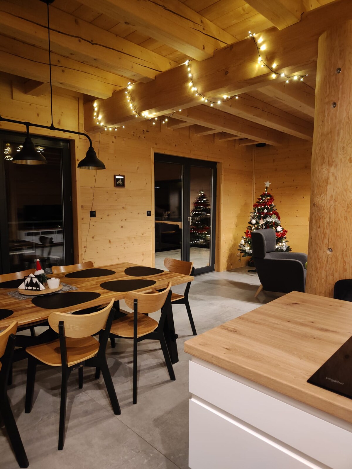Ang mga burol na puno ng usa, na hindi karaniwan na panoorin nang diretso mula sa iyong silid - tulugan o deck. Napaka - moderno, puno ng maganda at maingat na piniling kakaibang muwebles na gawa sa kahoy, nilagyan ng de - kalidad na kagamitan at mga komportableng higaan - interior. Sa balkonahe sa tabi ng mga muwebles at sun lounger na gawa sa eksklusibong kahoy na teak - Finnish sauna. Direktang dadalhin ka ng deck sa labas papunta sa pinainit na water pool. Nakahiga sa higaan o paliguan, mapapahanga mo ang mga tanawin ng mga bundok.