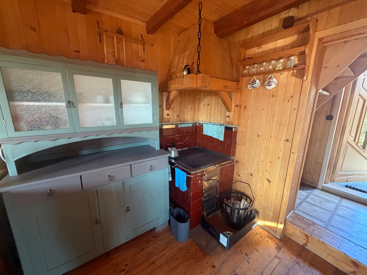 Mayroon akong isang maginhawang bahay na gawa sa kahoy na inaalok. Ang magandang katangian ng bahay ay ang espasyo, terasang bato at lugar para sa pag-aapoy ng apoy at pag-iihaw. Ang natatanging bahay sa kanayunan ay may natatanging kapaligiran at ayon sa puso, maaari kang makaramdam ng sarili sa bahay. Sa ibaba ay may maliit na sala na may kumportableng sofa kung saan maaari kang magpalamig, magbasa, manood ng TV (may available na library) Sa sala, may kahong yari sa kahoy na may yoga mat, mga sinturon, mga bloke, at mga kumot.