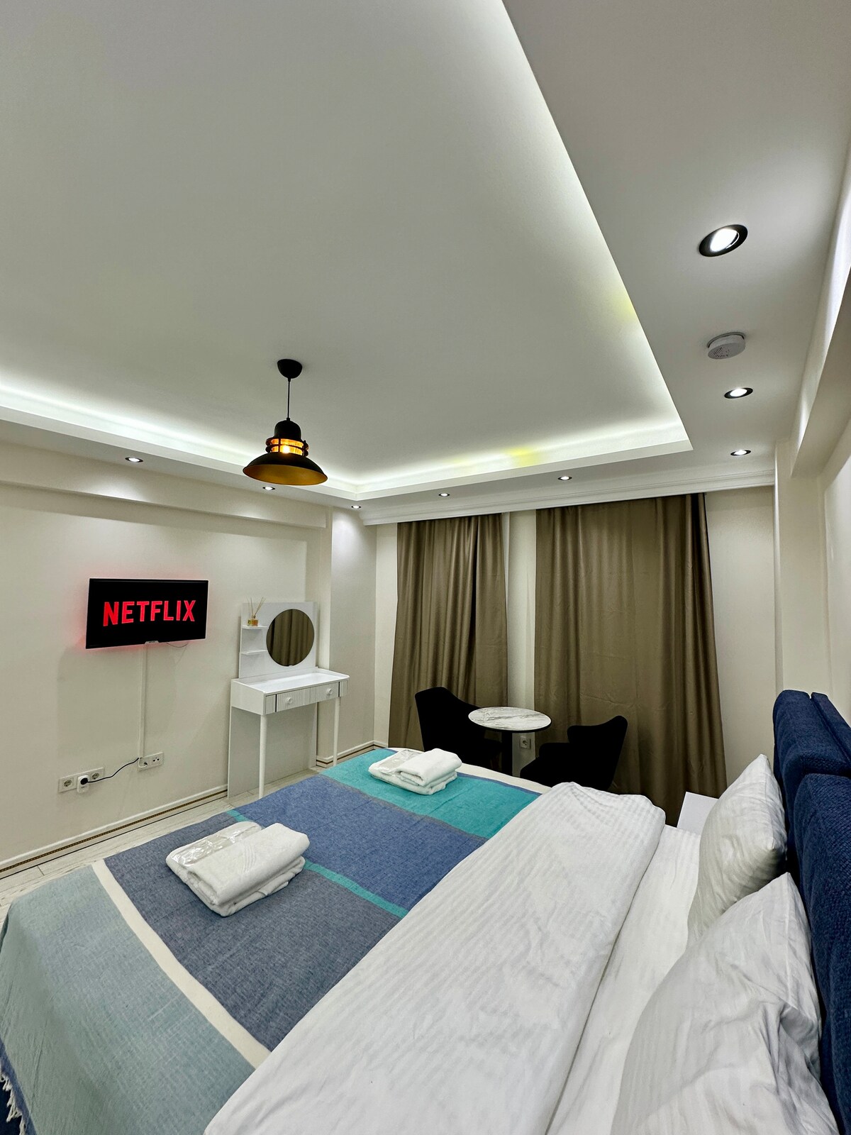 Matatagpuan ang Ottomare sa parehong pasilidad tulad ng 5 Star Radisson Blu Hotel sa Istanbul at pinalamutian ng mga mararangyang at natatanging bagay para maging komportable ka. - Madali mong magagamit ang mga amenidad ng hotel tulad ng mga restawran, pool, gym, gym, sauna (may mga karagdagang bayarin) - Mabilis na Wi - Fi - Libreng Paradahan - Mga Kagamitan sa Pagluluto - Full Towel Sets - Extra Blankets - Security - Air Conditioning - Heating - Ganap na Nilagyan ng Kusina - Internet Connection - Luxury Banyo - Full HD TV (Netflix) - Kusina at Luxury Dining Table