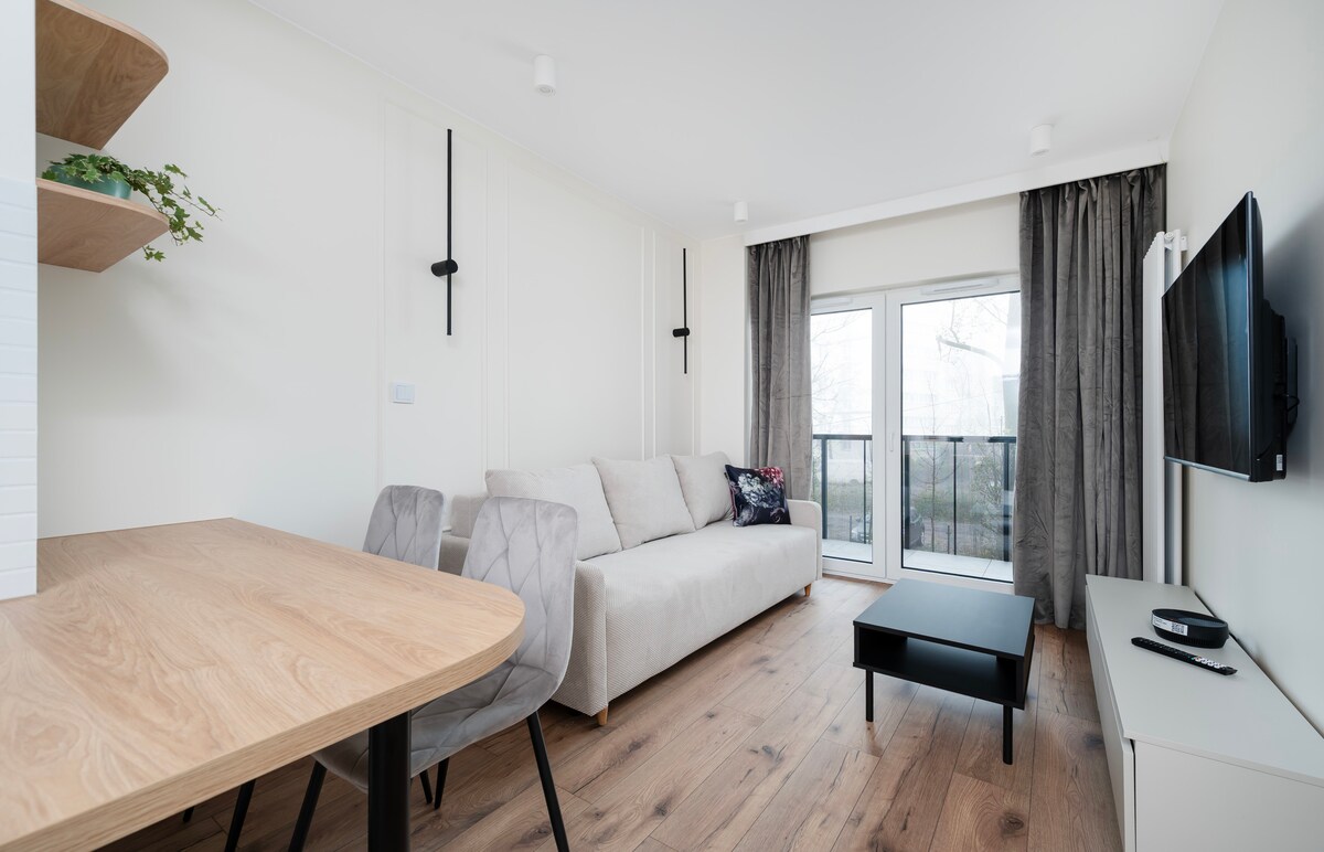 Modern at kumpletong kumpletong apartment na may 1 silid - tulugan na matatagpuan sa ika -6 na palapag sa tapat ng Manufaktura. Malaking balkonahe na may kamangha - manghang tanawin ng lungsod. Air - conditioning. Pribadong paradahan sa ilalim ng lupa, elevator sa gusali. Mainam ang apartment para sa mga bakasyunan sa katapusan ng linggo at para sa pagbibiyahe sa negosyo. Magandang lokasyon - magagawa mong maglakad o sumakay ng pampublikong transportasyon sa karamihan ng mga pangunahing tanawin ng Łódź.