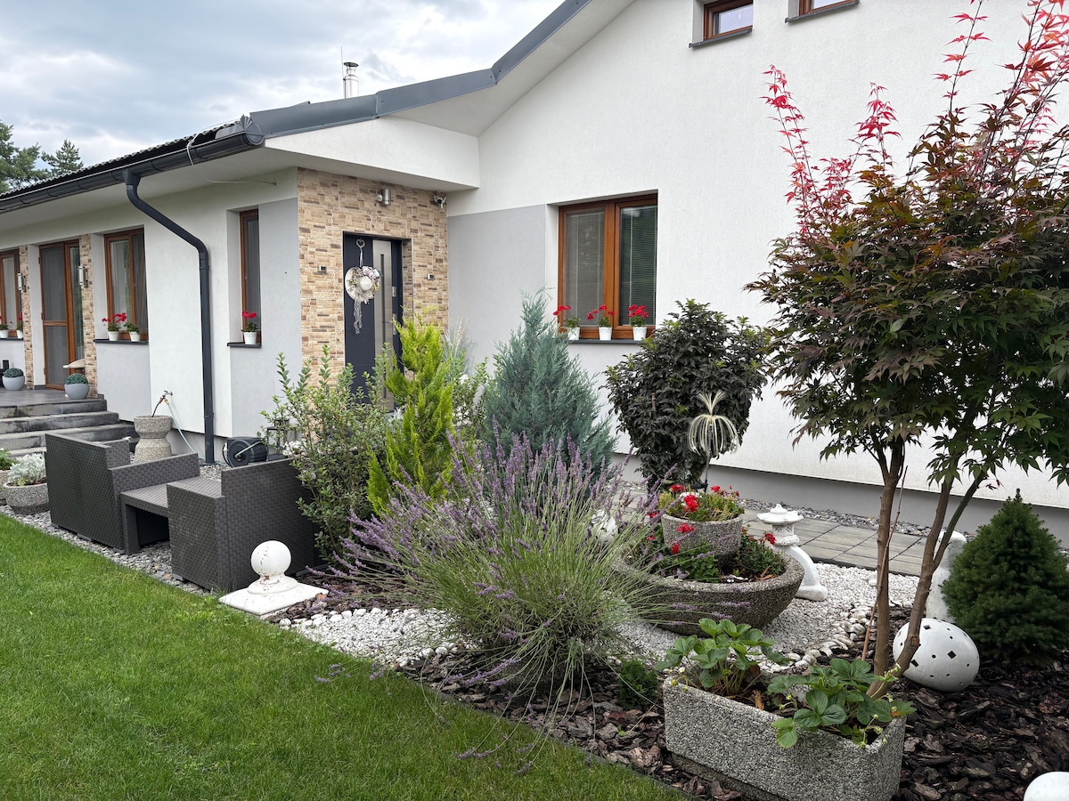 Matatagpuan ang komportableng hiwalay na apartment na may fireplace sa bagong family house sa nayon ng Sučany, ilang minuto lang mula sa sentro ng lungsod, mga ski resort, magandang kalikasan na angkop para sa hiking, pagbibisikleta, kabute, pangingisda, o paglangoy sa mga natural o aquapark. Maupo ka sa mainit na panahon sa isang hardin na may posibilidad ng barbecue, o sa malamig na panahon sa tabi ng fireplace, gumamit ng infrared sauna para sa 2 tao. May available ding travel cot (para sa ika-3 tao) at mga serbisyo sa masahe. Ang infrasauna at kahoy ay may bayad na 5€/araw.