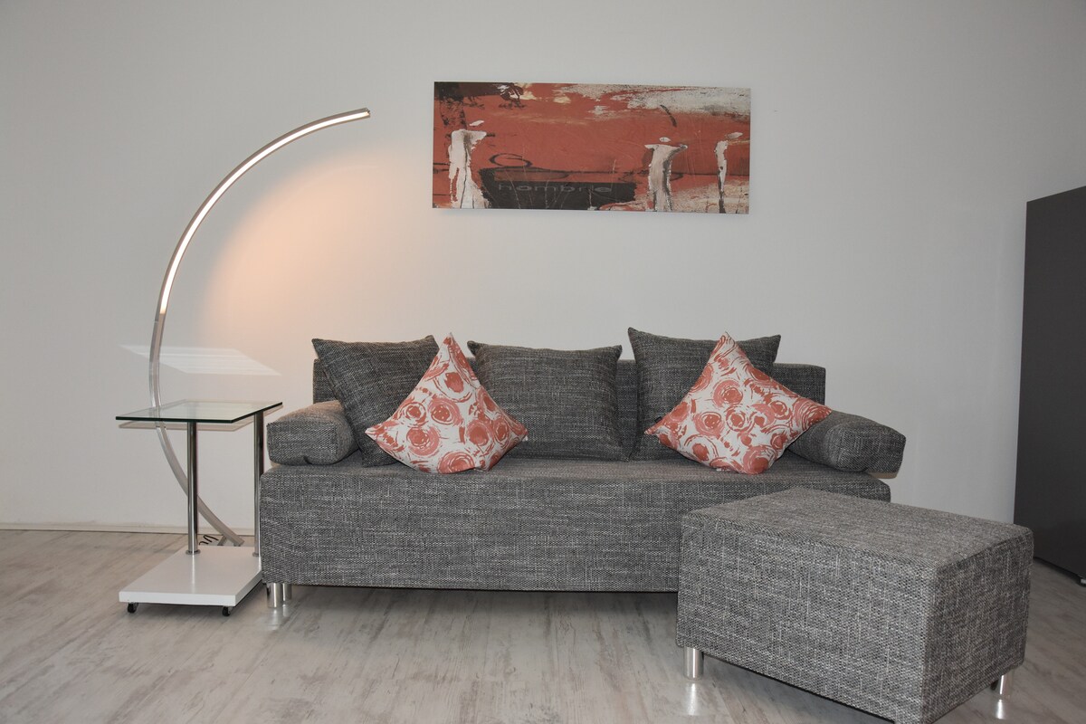 ✨ Newman Horizon Apartment Zirndorf – Ang Komportableng Tuluyan Mo para sa Pamilya, Negosyo, at mga Trade Fair Naghahanap ka ba ng matutuluyang nasa sentro, kumpleto ang kagamitan, at tahimik at komportable rin? Welcome sa Apartment Horizon 1, ang tuluyan mong may magandang disenyo na parang sariling tahanan mo sa sentro ng Zirndorf. 6 na minuto lang sakay ng kotse mula sa Playmobil FunPark at may magandang koneksyon papunta sa Nuremberg at Fürth—perpekto para sa mga pampamilyang biyahe, business trip, pagbisita sa trade fair, o mga pagtatalagang pantrabaho.