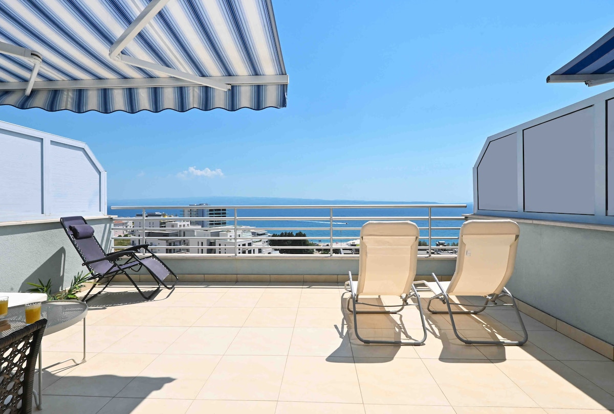 Matatagpuan ang apartment sa tahimik at eksklusibong residensyal na kapitbahayan na Zenta, sa isang maliit na gusali sa ikatlong, huling palapag. Ang gusali ay nasa linya ng gastos kung saan matatanaw ang marina, mga beach at mga nakapaligid na isla. Nag - aalok ito ng malaking 100 m2 na inayos na balkonahe na may Jacuzzi Hot tub. Humigit - kumulang 2,5 km ang layo ng UNESCO - protected na Diocletian 's Palace.