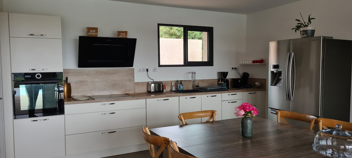 Ang eleganteng villa na ito na may magandang tanawin ng dagat ay perpekto para sa matagumpay na pamamalagi . Magrerelaks ka sa tabi ng pinainit na malaking swimming pool. Magkakaroon ka ng tanghalian sa maaliwalas na terrace nito, at masisiyahan ka sa mga magiliw na aperitif sa tabi ng swimming pool sa medyo sakop na pool house nito. Sa lahat ng kinakailangang kaginhawaan at malaking panloob na kusina, ang villa ay isang perpektong lugar na aalis para pumunta sa mga beach (5mn) o para sa magagandang hiking sa mga bundok ng "aiguille de Bavella".